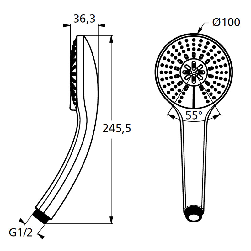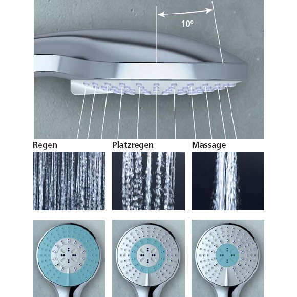 -легкоочищаемая 3-функциональная душевая лейка, Ø 100 мм;