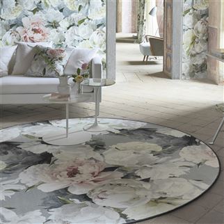 Насыщенный и эффектный круглый ковер с цветочным рисунком объединяет в себе крупные изображения пионов и листвы, имеющей оттенки цинка, румян, шалфея и древесного угля. С рисунком, нанесенным методом цифровой печати на плотный короткий полиамидовый ворс, ковер является воплощением насыщенного цвета и элементов.