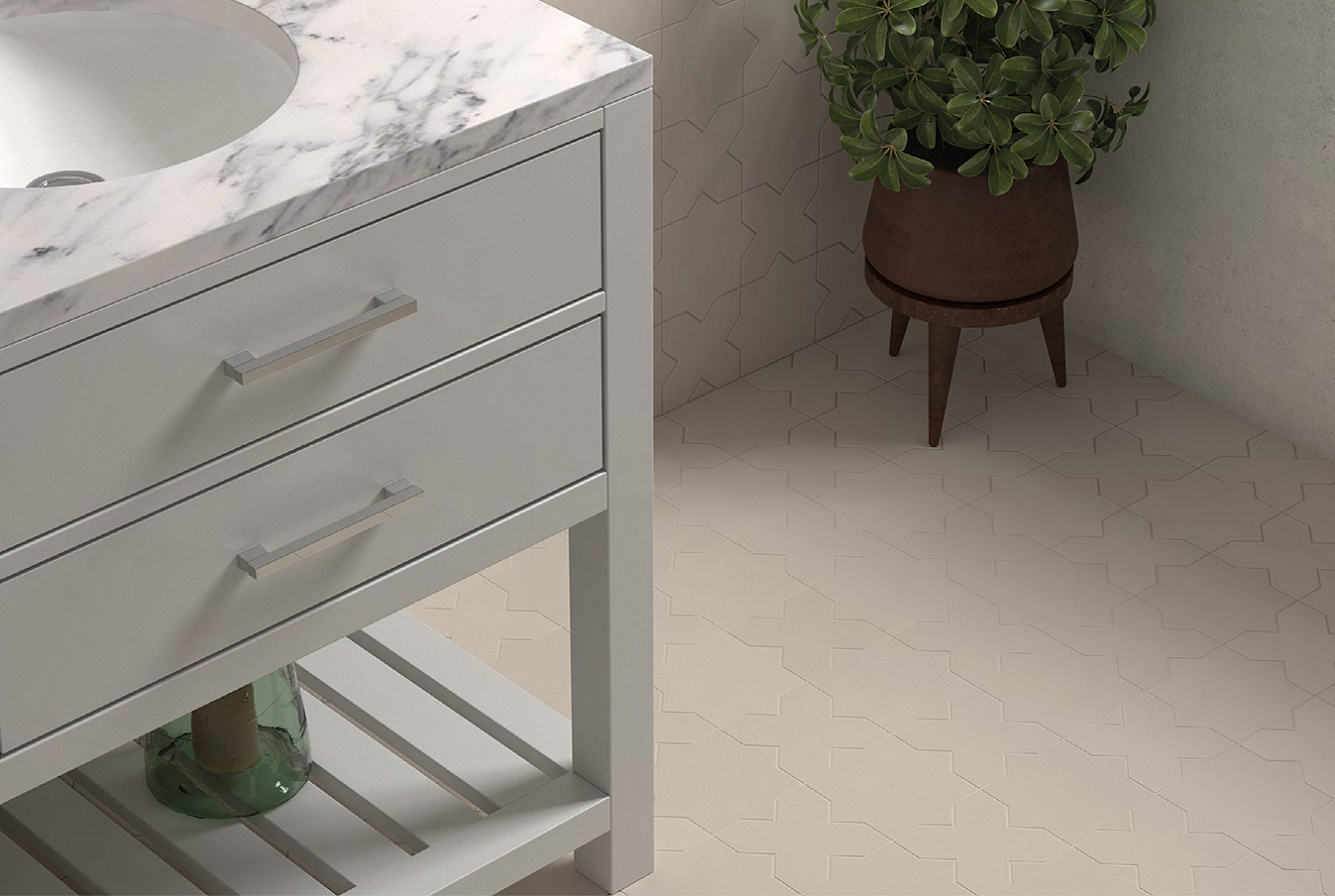 Серия представлена в двух форматах: Cross 12х12 см и Star 16,8x16,8 см с матовой отделкой поверхности. Цветовая палитра включает в себя восемь актуальных оттенков с легкой тональной вариативностью: White, Taupe, Oxford Gray, Jade, Pickle Green, Warm Siena, Azure и Black.