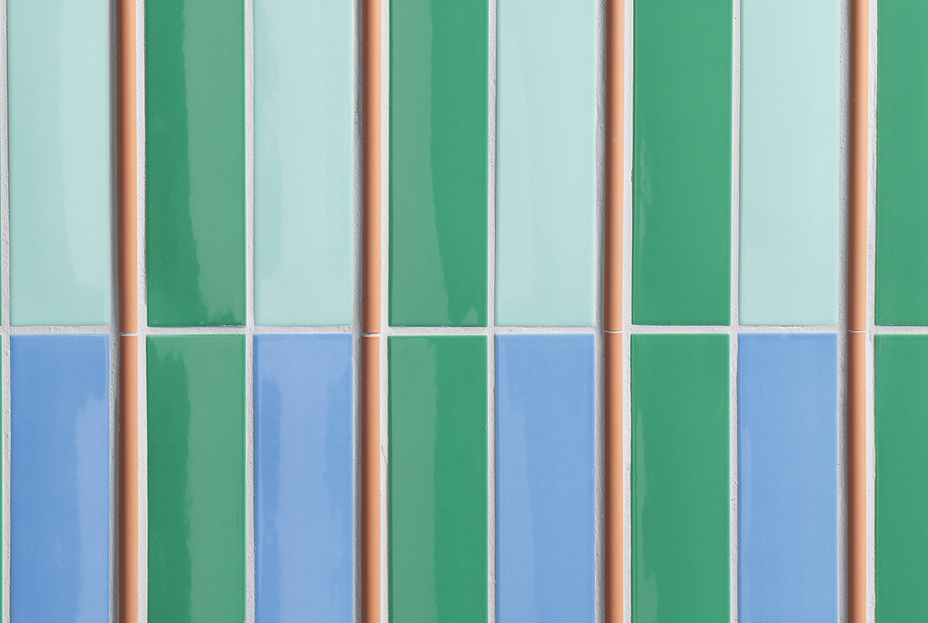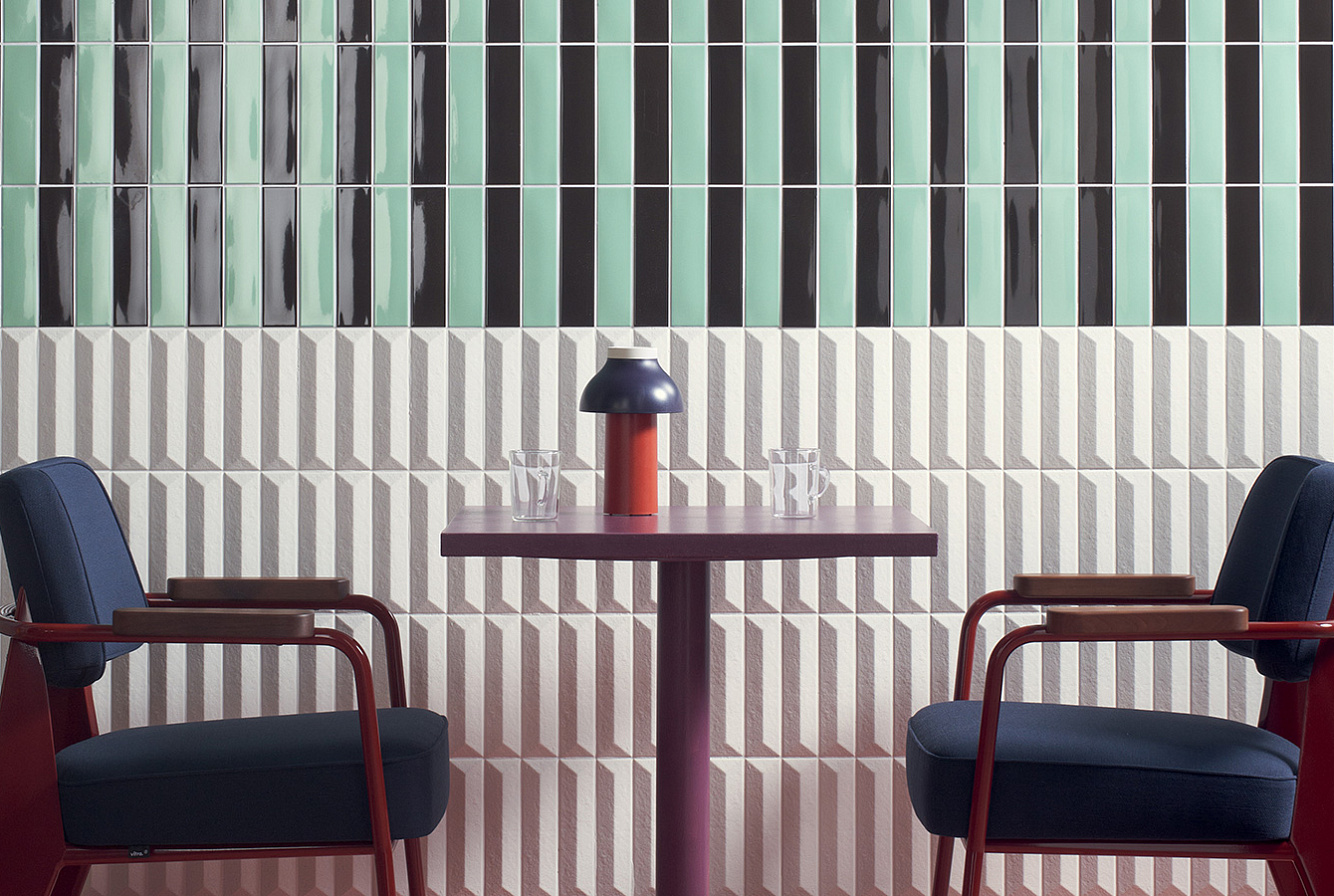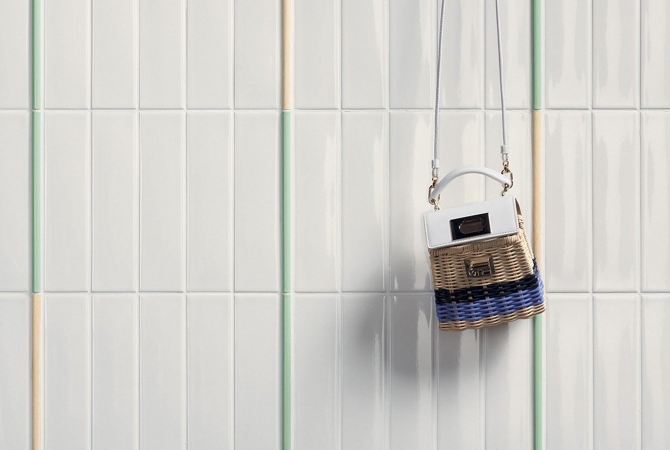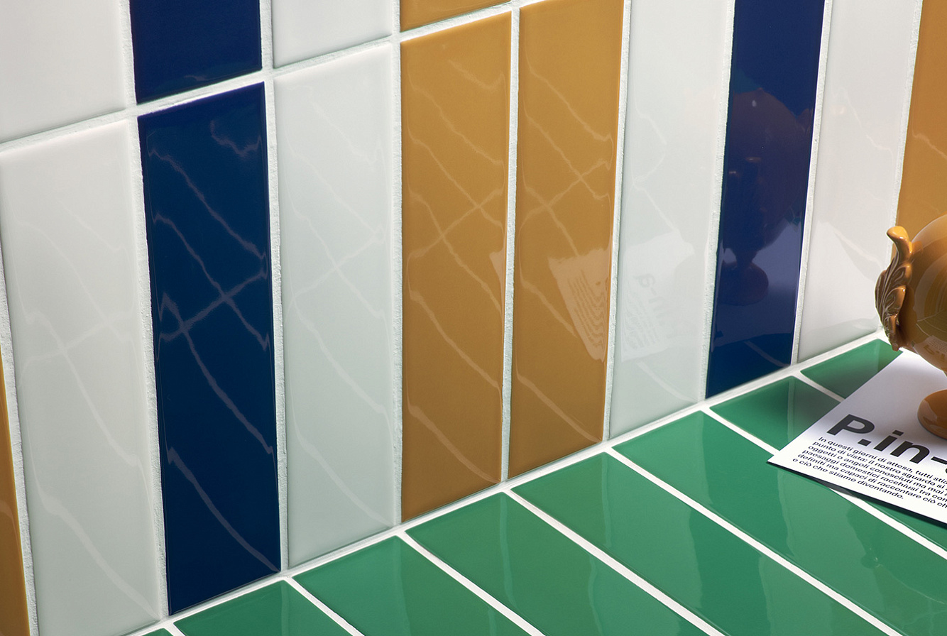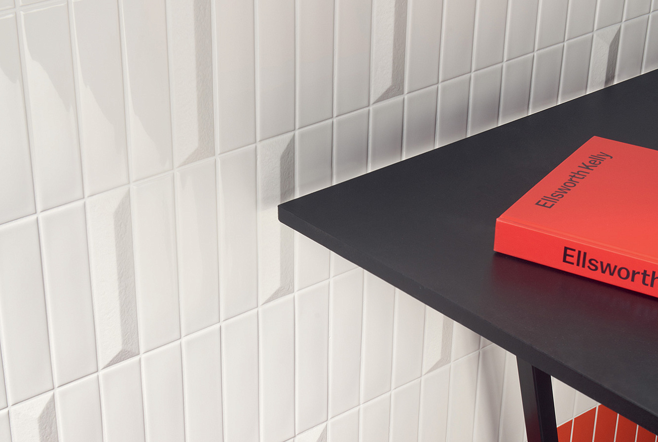 Коллекцию глянцевых однотонных моноколоров дополняет трехмерный элемент Raw 5х20 с глубоко матовой "гранулированной" поверхностью, который напоминает типичную плитку фасадов зданий 70-х годов.