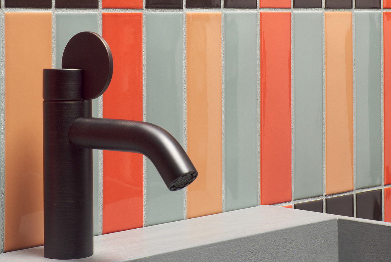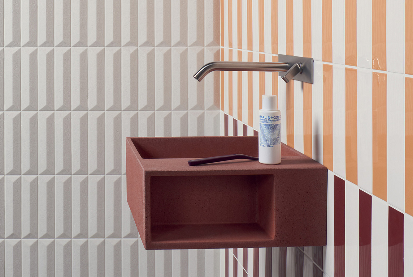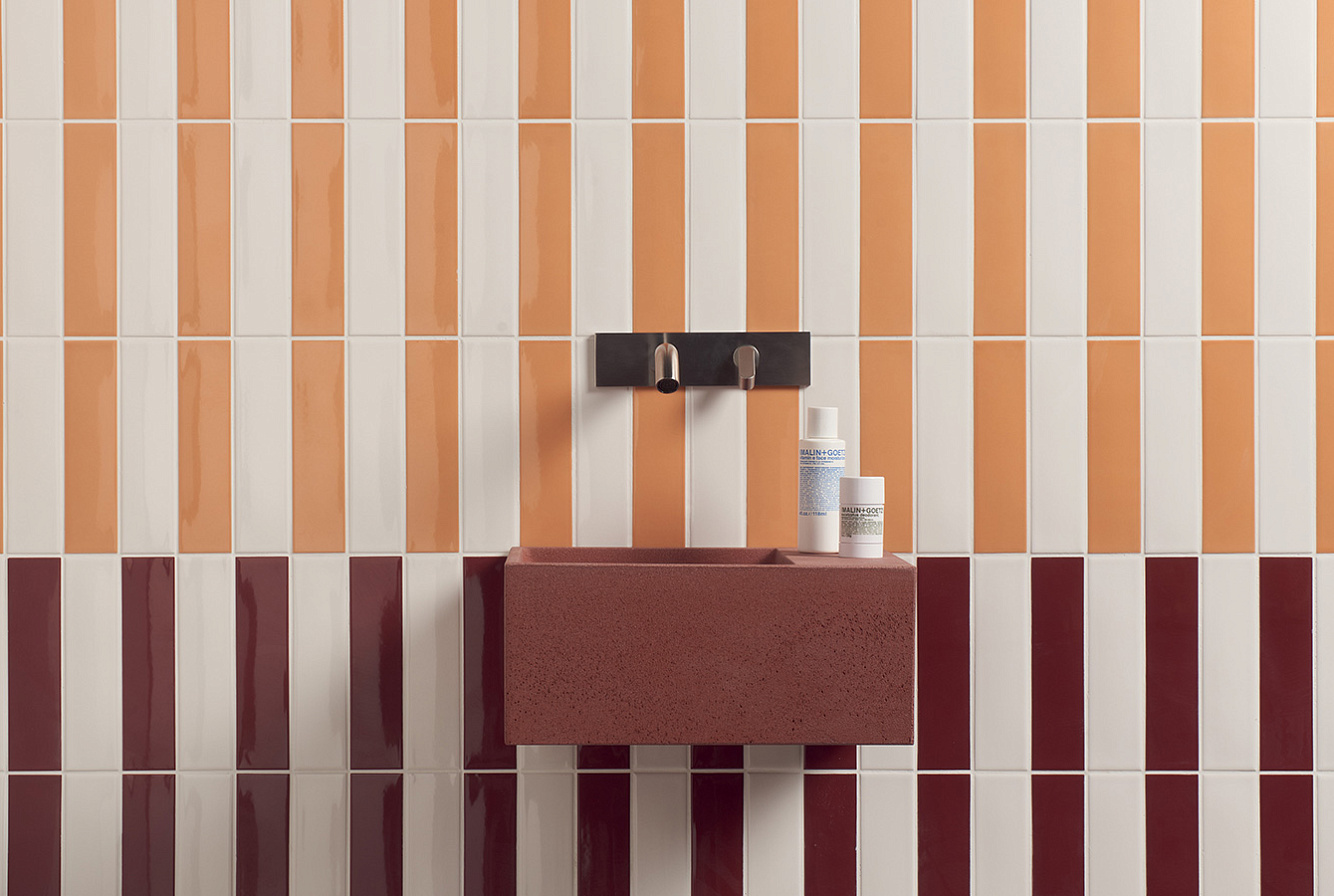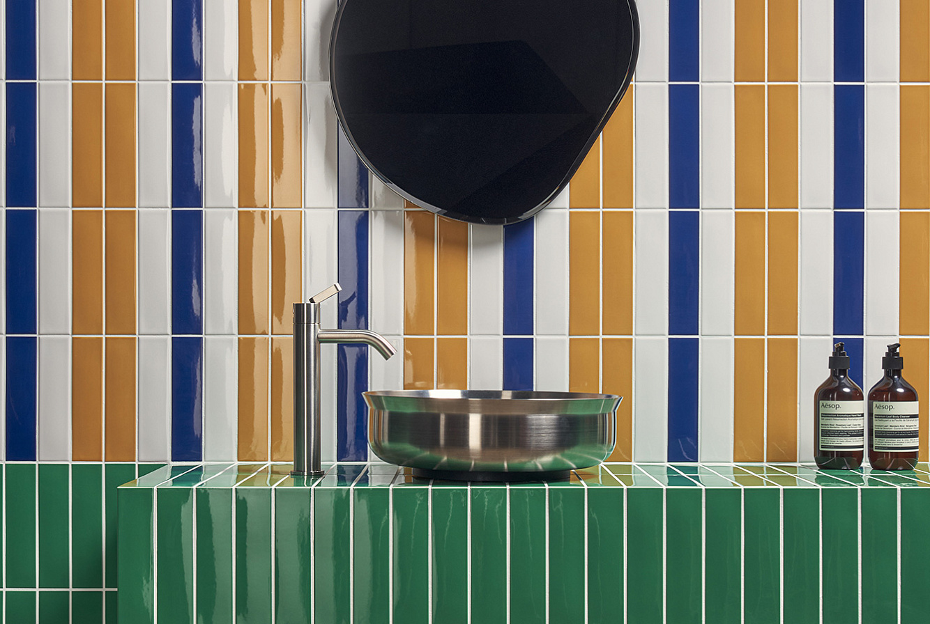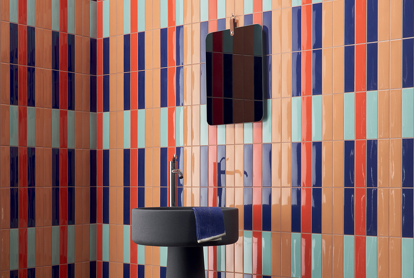 41ZERO42 KAPPA / 41ЗЕРО42 КАППА — неординарная коллекция настенной плитки, состоящая из 12 ярких моноколоров. Kappa выпускается в компактном размере 5x20 с глянцевой отделкой. Поверхность характеризуется уникальными плавными неровностями, характерными для изделий ручной работы. Возможность различных комбинаций безгранична — от полностью моноколорных фонов до уникальных многоцветных паттернов.