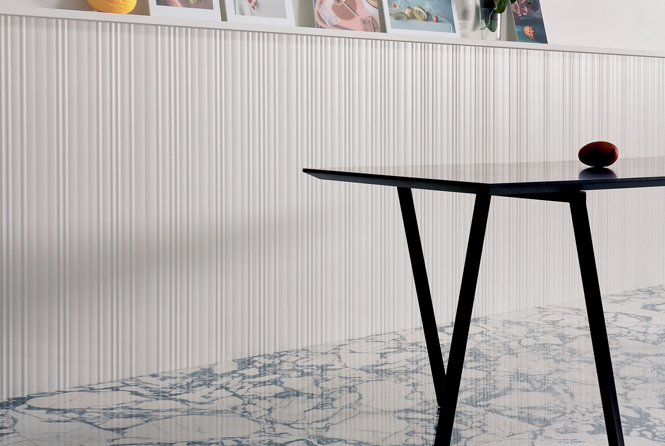 Коллекция керамогранита 41ZERO42 PULP / 41ЗЕРО42 ПАЛП представлена керамогранитом в форматах 60x120, 10x60, 7,5x60 см с тремя вариантами поверхности: полированная, матовая брашированная и рифленая. Серия PULP имитирует мрамор в пяти цветах - Gold, Black, Green, Blue, Red, дополнена уравновешенным белым ребристым декором Parallel.