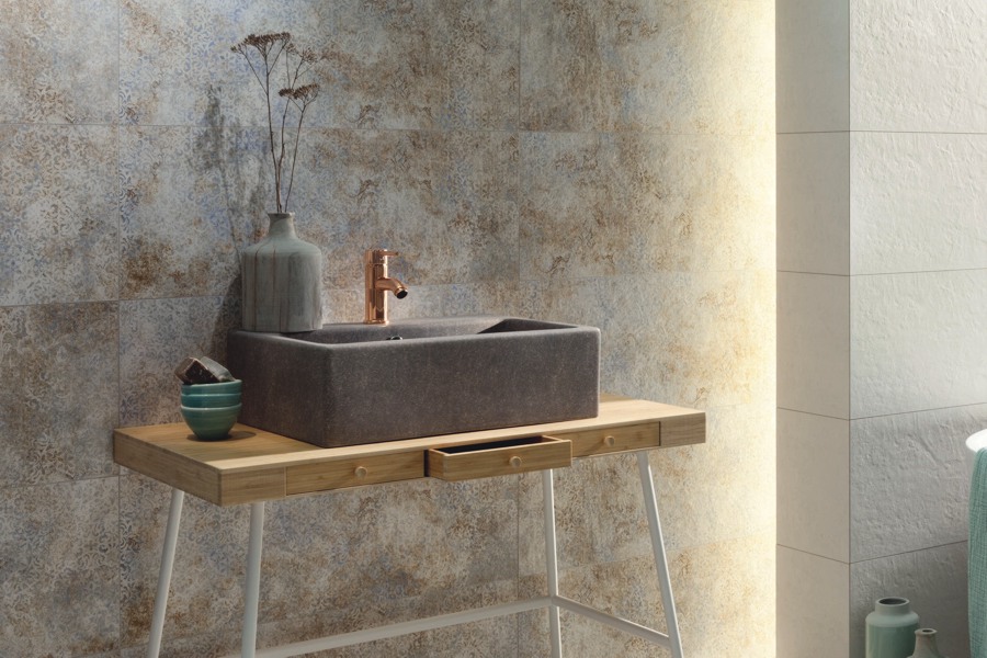является довольно необычным дизайнерским решением, прекрасно реализованным компанией Ceramika Tubadzin расположенной на территории Польши. Данный вид плитки символизирует бескрайние поля ржи, которые так и манят своей безмятежностью и красотой. Tubadzin INTERVAL подойдет для людей, которые находятся в гармонии и понимании с внешним миром и поможет отойти от бытовых проблем.