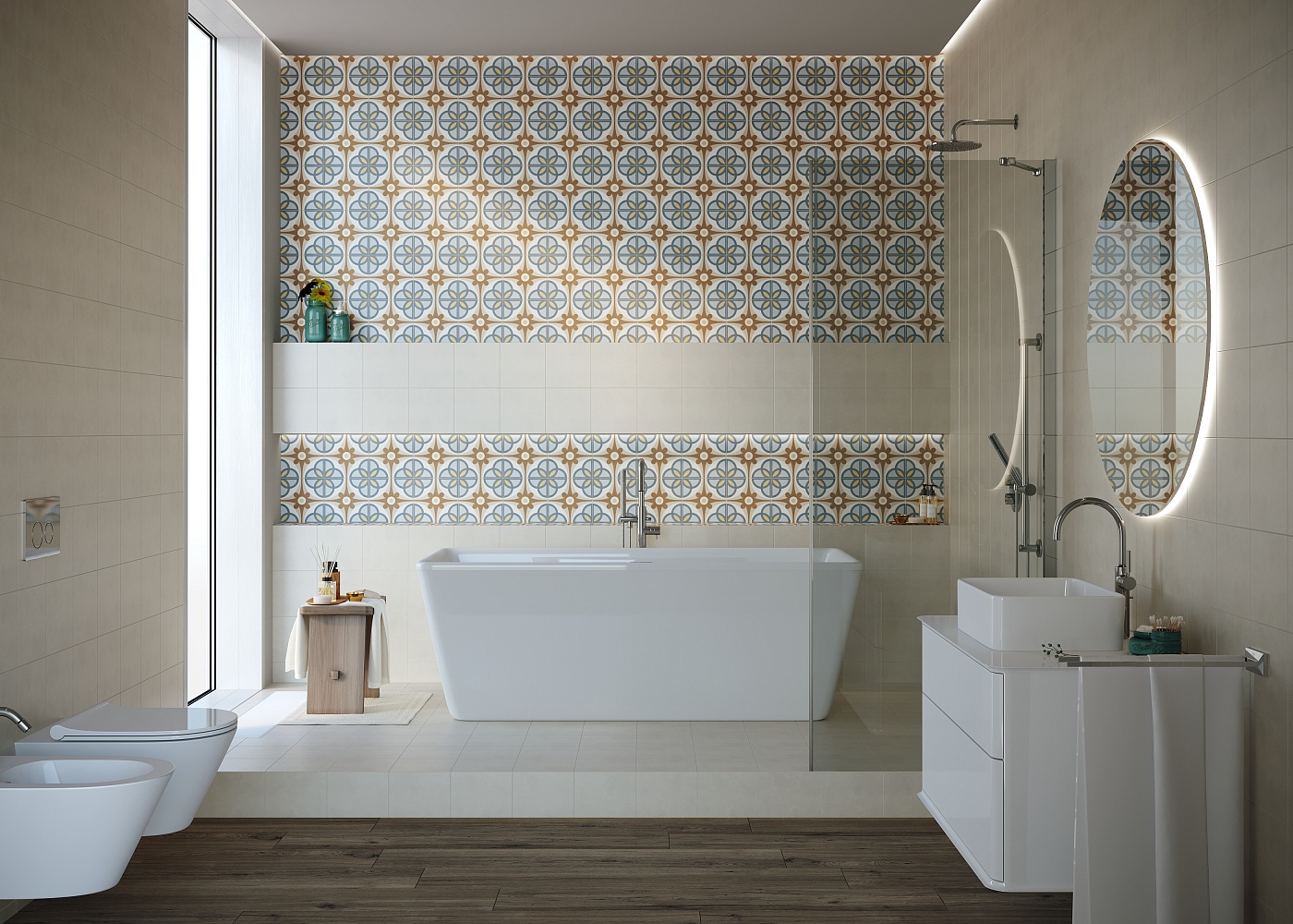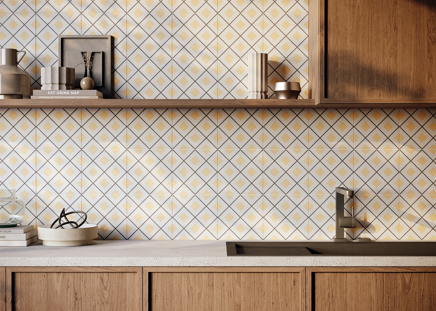 Малоформатная плитка с трендовым восточным узором подойдет для создания интересных акцентов. За счет натуральных приглушенных оттенков эта плитка наполнит интерьер уютной и теплой атмосферой в стиле этники или бохо. При этом она отлично подойдет как для отделки стен, так и для облицовки пола в жилых помещениях дома.
