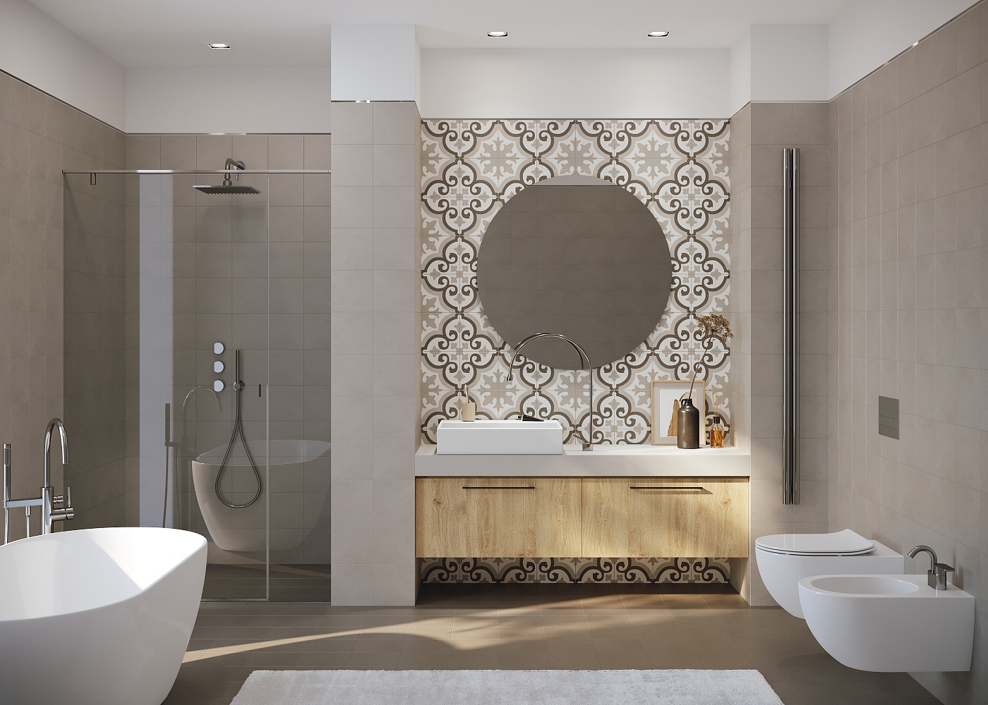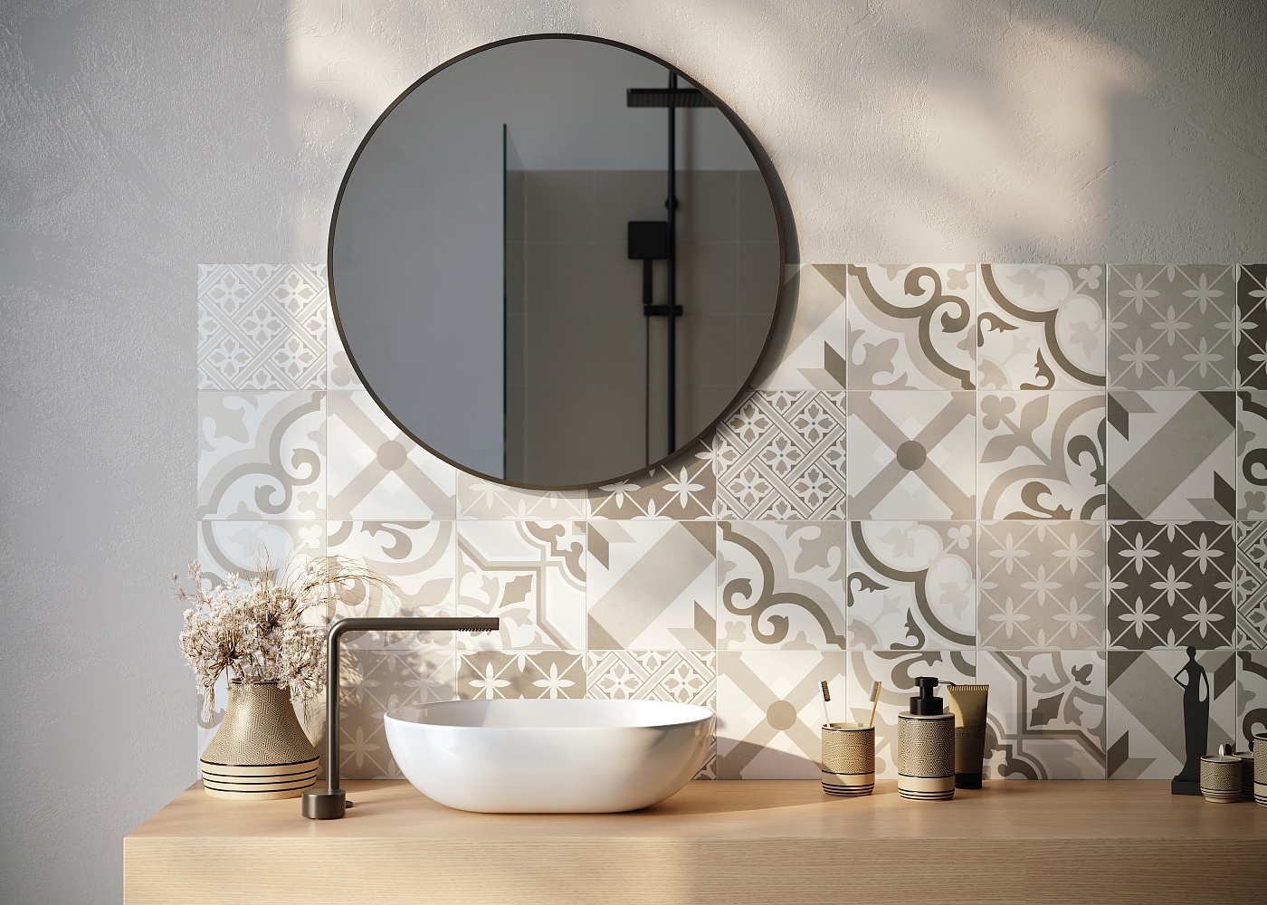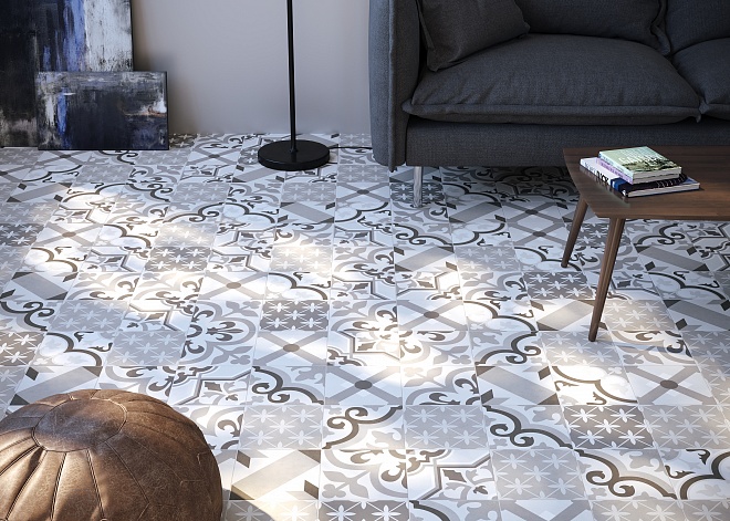 Трендовые восточные и этнические орнаменты широко представлены в мелком формате 20х20 в коллекции Pixel. Активные принты хорошо сочетаются между собой благодаря монохромной гамме, состоящей из черных, белых и серых оттенков. Приглушенные тона позволят создать в интерьере интересный акцент, не перегрузив его, а также сделают возможным сочетание керамической плитки с натуральным деревом, камнем и другими популярными текстурами.