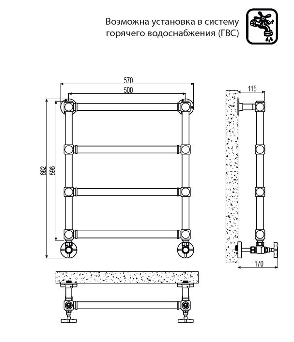 -Два настенных крепежа в цвет полотенцесушителя;