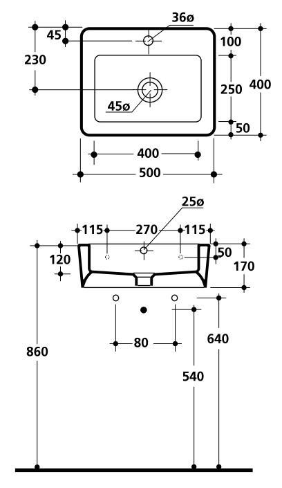 Kerasan Ego раковина 50х40 с 1 отверстием под смеситель, цвет белый