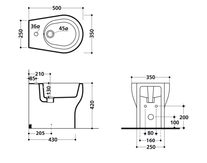 KERASAN K09 биде 50см напольное с 1 отв. под смеситель, белый