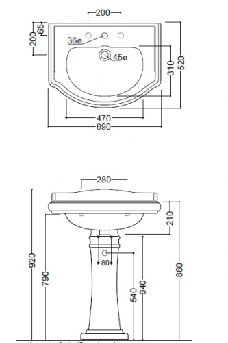 Раковина Kerasan Retro 1046 на колонне