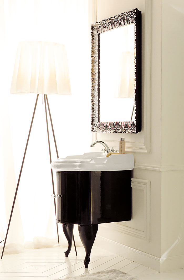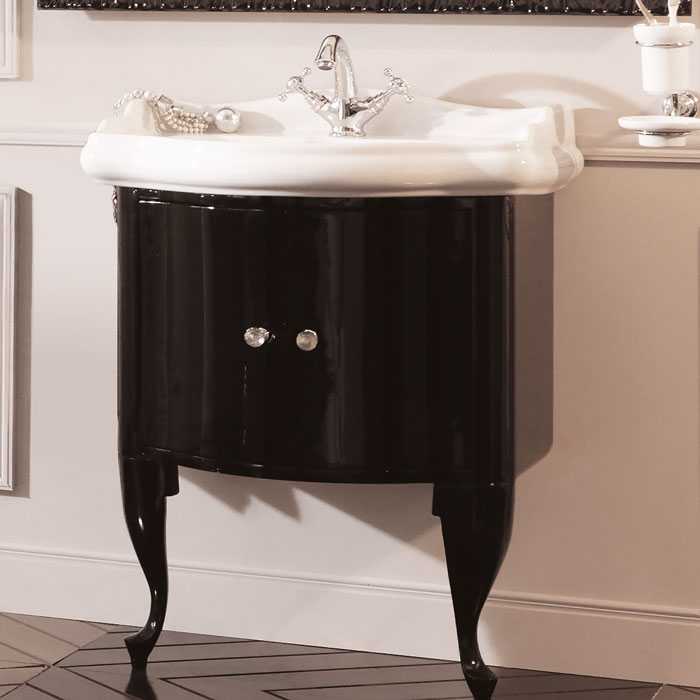 7361K1 KERASAN Retro 7361К1, база 69см, под раковину 1046, цвет: черный глянцевый, ножки: черные, ручки: кристалл/кольцо-хром