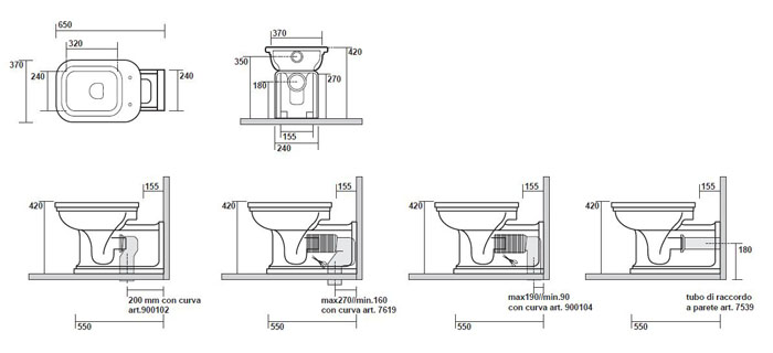 411601bi    Kerasan Waldorf Унитаз напольный пристенный удлиненный "Prolungato" 65х37см, цвет белый