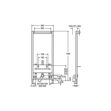 Регулировка высоты монтажа до:    200 мм