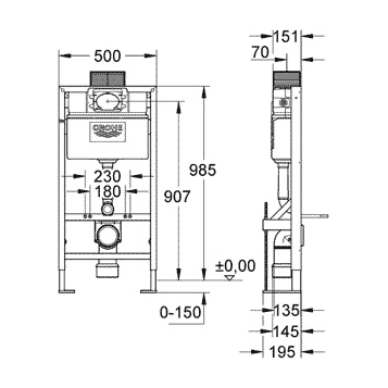 Расстояние между болтами для монтажа унитаза:    180 или 230 мм
