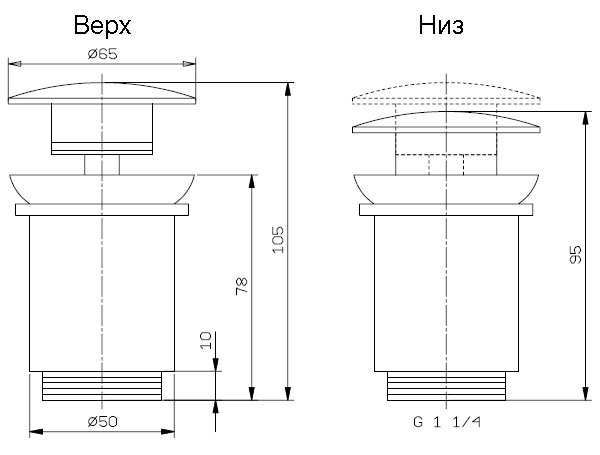 Описание:    Донный клапан с системой click-clack с переливом, 1"1/4.