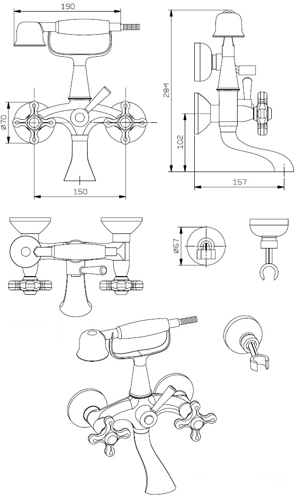 Варианты: Исполнение - хром, черный матовый-хром, хром-золото, белый-золото, состаренная медь, состаренная бронза.