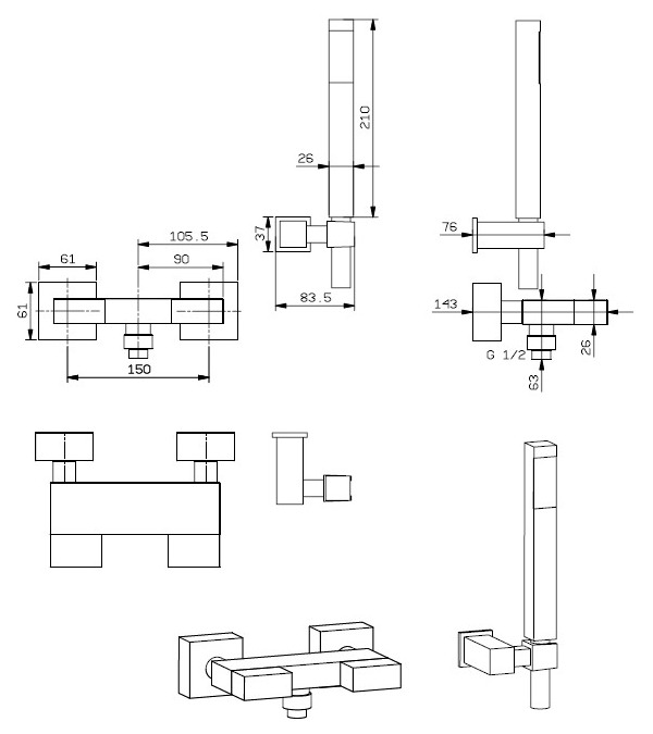 Daniel Twin Смеситель для душа с душевым комплектом (ручная лейка, держатель, шланг 150 см.), хром