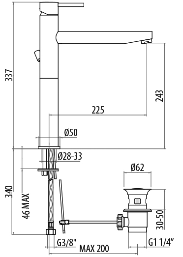 Смеситель для раковины с донным клапаном, однорычажный