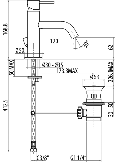 Смеситель для раковины с донным клапаном, однорычажный