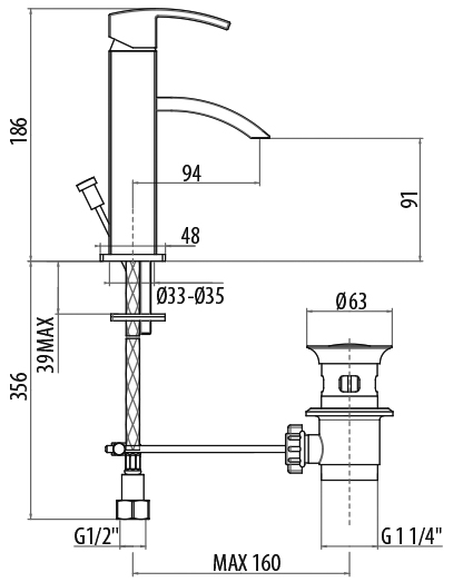 Смеситель для биде с донным клапаном, однорычажный