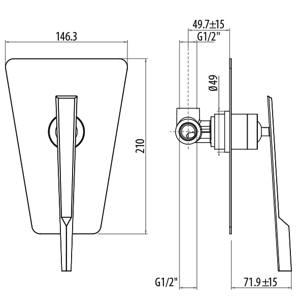 Встраиваемый cмеситель для душа, однорычажный