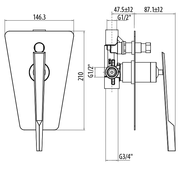 Встраиваемый cмеситель для ванны/душа, однорычажный