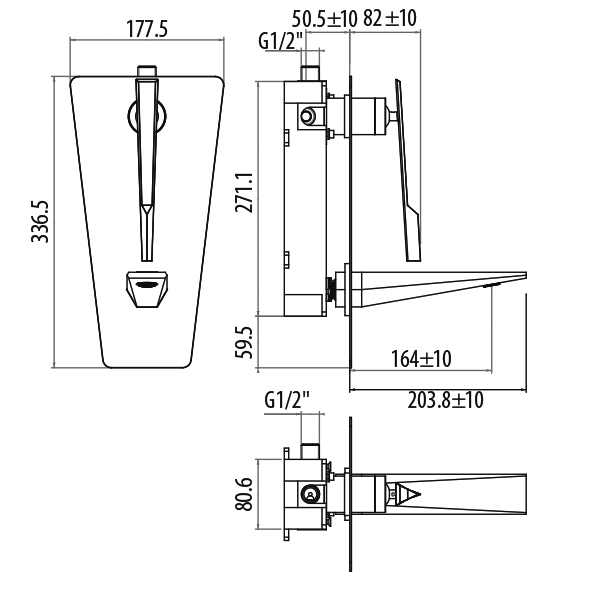 Встраиваемый cмеситель для ванны/раковины, однорычажный