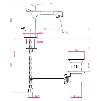 Gattoni H2omix3000 Смеситель для раковины с донным клапаном, цвет хром