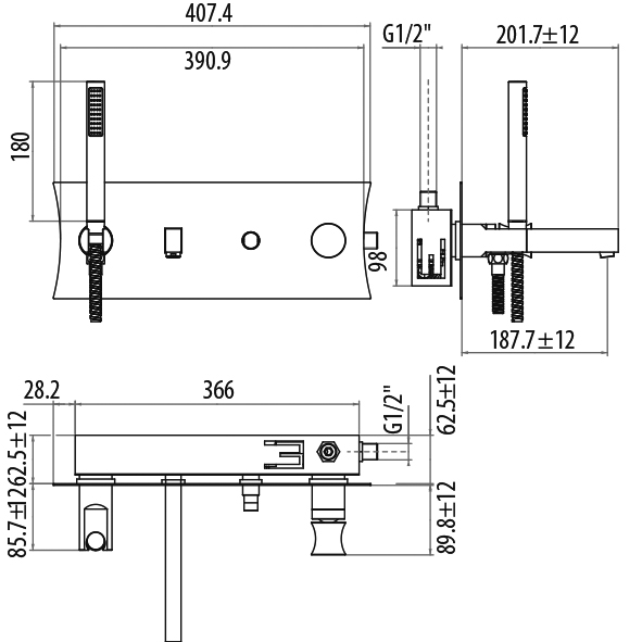 Встраиваемый cмеситель для ванны, однорычажный