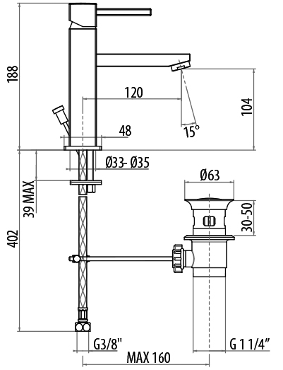 Смеситель для раковины с донным клапаном, однорычажный