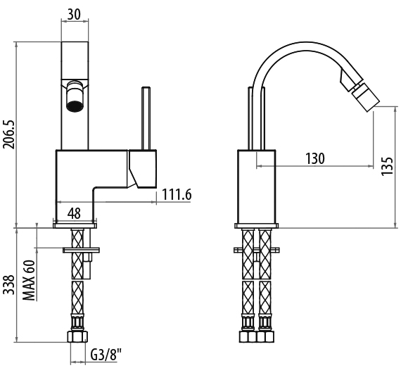 Смеситель для биде, однорычажный