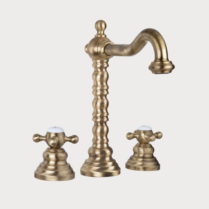 Смеситель для раковины на 3 отв. с высоким изливом, с донным клапаном