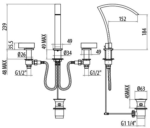 Смеситель для раковины на 3 отв., с донным клапаном