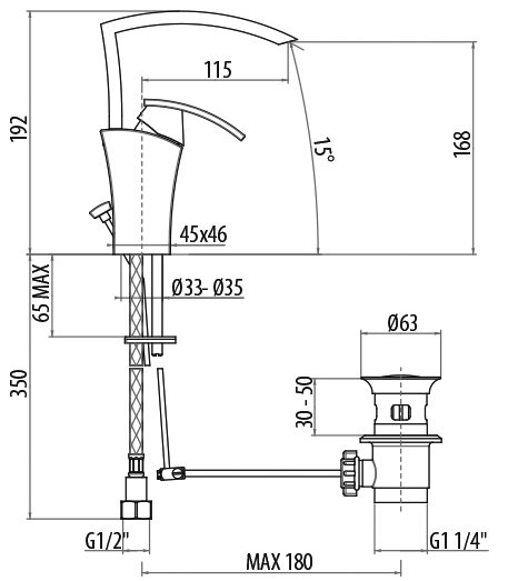 Смеситель для биде, однорычажный, с донным клапаном