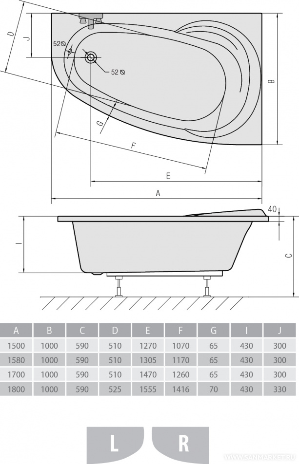 NAOS L/R Ванна 18111/19111