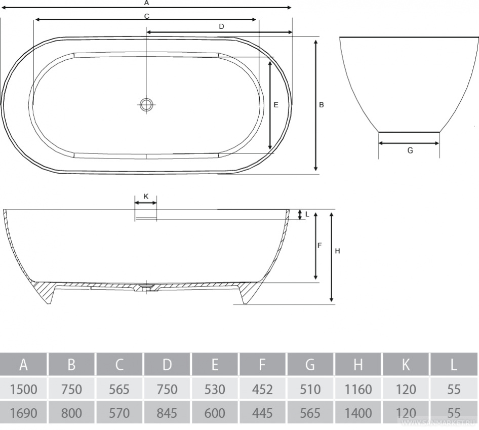 Выполненная в белом матовом цвете овальная ванна из литьевого мрамора Palermo PAL-150M отличается лаконичностью дизайна и изяществом тонких стенок. Отдельностоящее изделие размером 150х75 см от европейского бренда Alpen подходит для просторных помещений с минималистичным или классическим интерьером.
