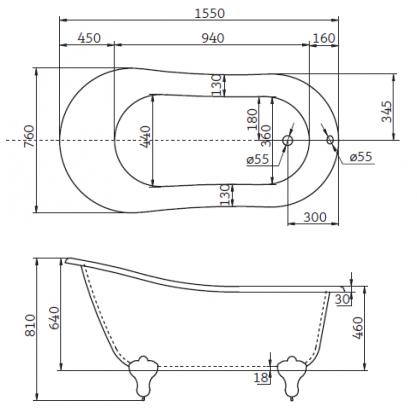 -Диаметр слива-5,5 см